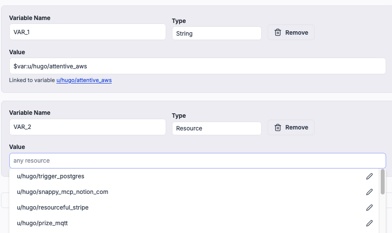 Flow environment variables now support resources and variables.